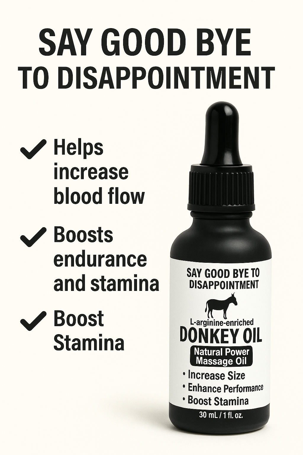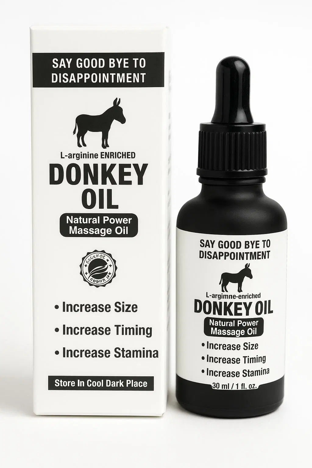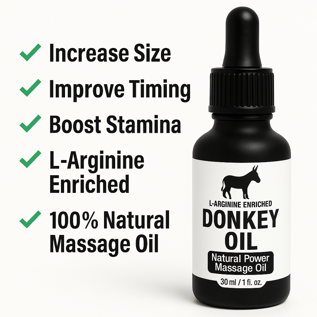 Introducing Donkey Oil — a natural power massage oil enriched with L-Arginine, designed to help men enhance performance, boost confidence, and take control of their intimate wellness. This premium oil supports size increase, improves timing, and elevates stamina through regular massage use.